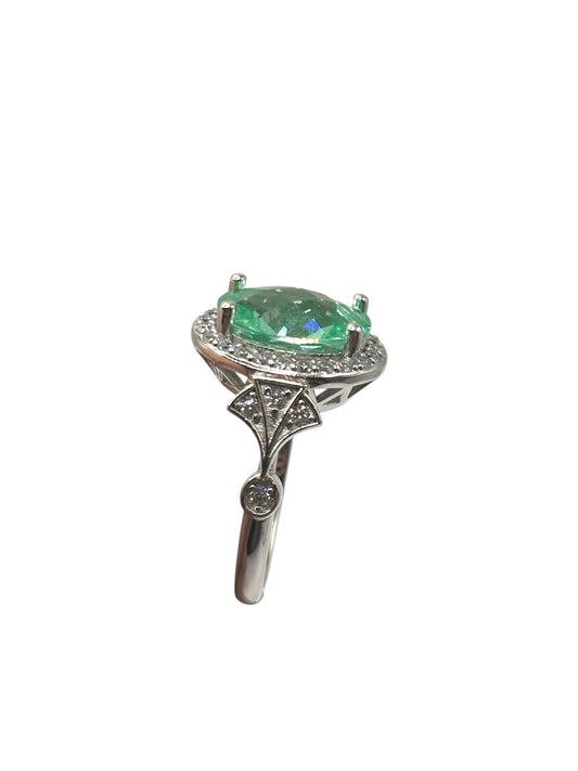 Celestial Grace – Ocean Green Spinel Halo Ring in Sterling Silver