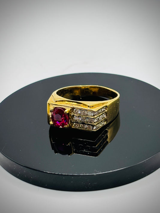 18k Pear shaped Ruby with Marquee and Baguette Diamonds